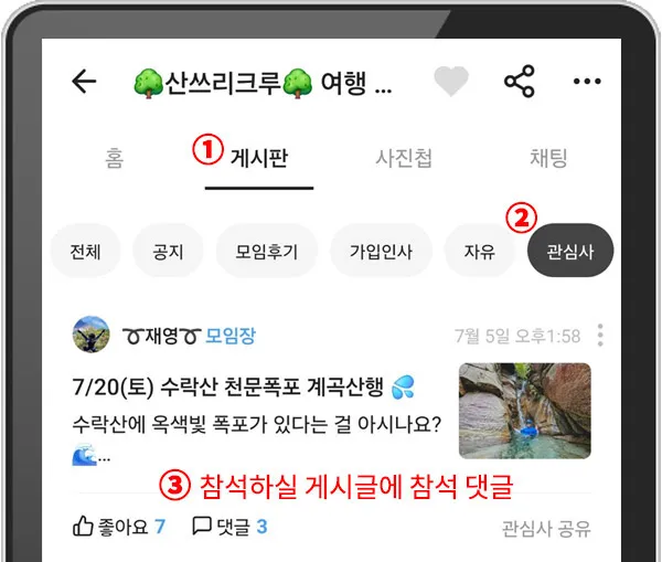 관심사 게시판에 댓글로 참석
