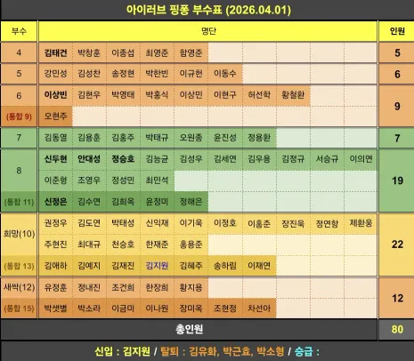 🏓 탁구를 사랑하고 열정적으로 활동하는 모임입니다 🏓 가입조건 부수가 있거나 초보자는 레슨받는분(또는 예정) 연령 : 80년생 이하(20살까지) ※상세 내용은 게시판 모임안내사항 필히 확인 🏓 정기모임 : 상시 🏓 리그전 : 매월 토요일 저녁 1회 🏓 정기전 : 매월 셋째주 토요일 🏓 활동지역 : 수원 🏓 월회비 : 10,000원(구장비 별도) 🏓 가입비 : 20,000원(선물지급) 회비는 정회원 등록 후 납부 🏓 준비물 : 라켓, 실내운동화, 운동복 👌 가입인사 작성 필수 👌 초보자는 레슨 수강중이거나 의사가있는분 🤚 비매너, 타목적 X ☎️ 문의 : 카카오톡 doobarsla 🌟 인스타 : @i.love_pingpong1106