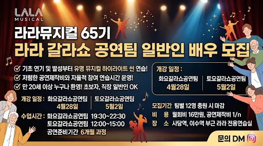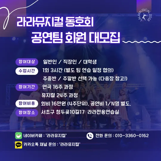 라라뮤지컬동호회 모임장입니다! 상담/문의 환영합니다!