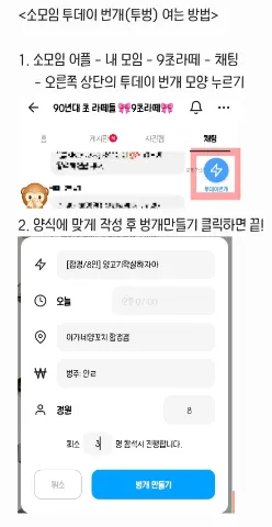 🌸 30대 초중반 90년대생들 함께 놀아요 🌸 📌 가입 조건 90 - 96 (빠른 X) 🐾 활동 지역: 서울전지역 🐾 맛집, 술, 카페, 운동, 여행, 공연, 전시 하고 싶은 것 뭐든지! 🐾 논알콜 환영 🙆♀️ 애주가 환영 🙆♀️ 🐾 퇴근 후, 주말도 언제든 급!! 번개 ✨️ 가입 후 2시간 이내 가입인사 필수! ✨️ 오픈톡방 운영중 : 가입인사 확인 후 오픈톡방 초대 ✨️ 신입은 15일 이내 벙참 필수! 🚫 빠른년생 없어요 🙅♀️ 탄생년도 기준 친구친구! 🚫 바쁘다바빠 안 돼요 🙅♀️ 벙 월 2회 필참! 🚫 욕쟁이, 화쟁이 🙅♀️ 서로간 예의 꼭 지켜주세요! 🚫 술진상, 과한 술주정 🙅♀️ 음주는 본인 주량껏만!! 🚫 남미새, 여미새 🙅♀️ 연애는 가능, 분란은 싫어요! 🚫 영업, 사이비, 정치질, 뒷담 🙅♀️ 불편한 상황 만들지 말아주세요!