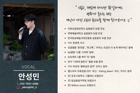 "작은 골목, 큰 울림" 🙋♂️노래하고 싶은 누구나, 🙋♀️보컬 공연 경험을 쌓고 싶은 누구나, 🙋사람들과 음악으로 이어지고 싶은 누구나, 이곳으로 오세요🫶 🎤 주요 활동 - 매주 토요일 4시 정기 모임 & 자유 노래 - 버스킹 & 정기 공연 참여 - 듀엣/콜라보 프로젝트 - 보컬 피드백 & 성장 공유 🎶 버스킹부터 공연까지 노래를 무대로 연결합니다 📌 가입제한 <90년생 ~ 06년생> ❌ 영업 ❌ 노래와 음악이 아닌 불순한 목적 ⭕ 실력 제한 없음 ⭕ 초보 / 취미 / 준비생 모두 환영 📍장소 : 사가정로 49길 46 지층 스튜디오 🍀 공지 필독 & 가입인사 필수 📮 궁금한 점은 DM주세요 ☺️ 🫶Instagram : golmok_sound