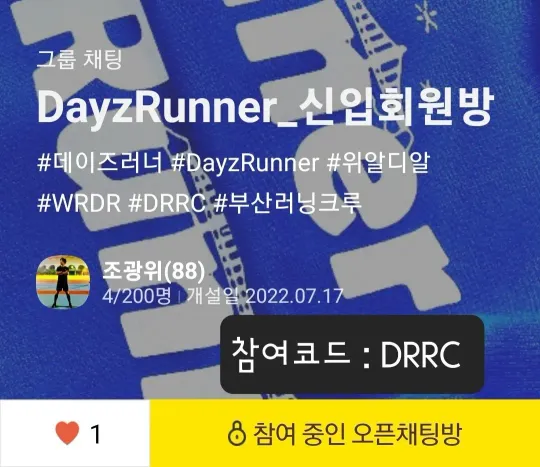 🇰🇷 DRRC | DayzRunner | 데이즈러너 🇰🇷 러닝이라는 공통된 주제 아래 함께, 같이라는 가치를 찾아갑니다. 🔹️가입대상🔹️1982년 이후 출생한 성인 🔹️정규러닝🔹️주1회 🔹️신규회원🔹️모임 [2회] 참여 후, 정회원 전환 🔹️정회원 회비🔹️월 5,000원 🌟 instagram : @dayzrunner_official { founded in 2018 🎈 8th Anniversary }