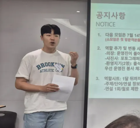 🎤 처음부터 말을 잘하는 사람은 없습니다! 🌟 말하기가 두렵다면? 🌟 발표할 일이 생겼다면? 🌟 누군가 앞에서 당당하게 말하고 싶다면? 💁🏻♀️ '맛있는 한국어 토스트마스터즈'에서 마음껏 말하고, 실컷 실수하고, 든든한 피드백까지! 💬 실제 참가 후기 "처음엔 손이 덜덜 떨렸는데, 이제는 발표가 기다려져요!" "면접 준비하려고 왔다가, 매달 계속 오는 중입니다." "누가 실수해도 다 같이 웃어줘요. 그래서 계속 오고 싶어요." 📚 2010년부터 꾸준히 운영된 체계적인 프로그램으로 ✔️ 면접/스피치/발표/PT 실전 연습 ✔️ 실수해도 OK! 부담 없이 말하는 연습 ✔️ 친절한 피드백과 따뜻한 분위기 🗓️ 모임 일정 🕐 월요일 저녁 7:20-9:30 (모임 시작은 7시 30분, 마지막 주 월요일은 모임이 없습니다!) 📍모임 장소 : 철부지모임공간 강남점 2호점 6층 파란문 📢 실제 모임은 20~30명이 함께하며, 소모임은 홍보 채널 중 하나입니다! 📮 문의는 게시판에 자주 묻는 질문 확인해주시고, 소모임 채팅창으로 편하게 주세요! 🌟 맛토마 네이버 카페 : https://naver.me/FoXgsGKH 🚫 타 모임 운영진 / 보험 / 영업 / 종교 관련 (게시판 공지 미준수시 강퇴)
