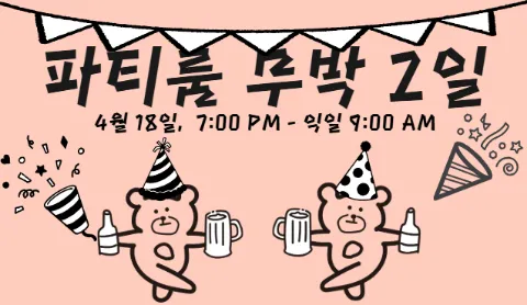 🎉파티룸 무박2일 4월 정모🎉 4월 18일 토요일 PM 7- 익일 AM 9 -1차 오픈: 4월 3일 금요일 낮 12시 (공지참조) 공과사🌸다양한 직업군과 친목, 여행, 취미🌸 《Since 2020》 ▪ 가입 기준 - 대기업 공무원 공기업 전문직 교사 은행원 간호사(대학병원) (계약직, 인턴 제외) - 나이 : 00 ~ 89년생 ▪ 주요 모임 지역 - 수원, 동탄, 용인, 화성, 안양, 평택, 성남, 분당 등 - 전국 각지 여행 -------------------------------------------------- ▪ 가입 순서 1. 공지사항 확인 2. 자기소개 글 작성 [24시간 내] 3. 카톡 직업 인증 (공지 참조/카톡 wnsrl6244) 4. 밤 11시 이후에는 가입을 자제해주세요! ⭐ 인증 전 모임 참석 불가 ⭐ 1회 참여 이후 오픈챗방 초대합니다 ⭐️ 남- 가입 후 1달 이내 필참 여- 가입 후 2달 이내 필참 ⭐️ 벙 당일 취소시 벌금 만원 -------------------------------------------------- 🧚♀️ 매달 다양한 컨셉의 정모 진행🧚🏻♀️