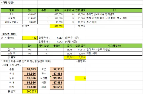 각자예매, 식사없음