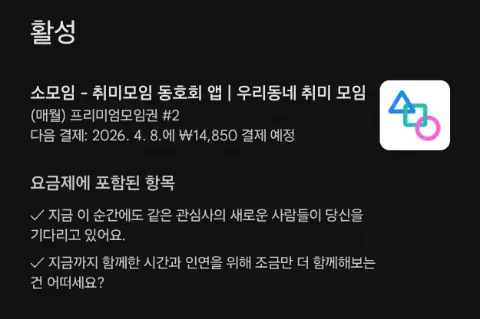 ⛔️모임 회칙 필독해 주세요⛔️ 🚫00~07시 매너 타임 채팅 가입🚫 ‼️유령회원 강퇴 심함‼️ 🗓매월 영화벙 대학로 연극벙 🗓매월 마지막주 토요일 생일벙 🍀🙋♂️🙋♀️ 법적으로 싱글인 79년생까지(빠른 ❌️) 🍀알콜 없이도 서로 다른 사람이 모여 소통하며 취미를 공유하며 좋은 인연을 만들어가는 모임 🍀#맛집#카페#보드카페#영화#연극#공연#전시회 #경기관람#콘서트#여행#캠핑 하고 싶은거 다함 🍀지역에 상관없이 활동이 가능면 가입 가능 🔥게시판 이용방법🔥 ☘️게시판- 관심사 키워드 게시판 클릭 (확정 벙) ☘️게시판-자유 키워드 게시판 클릭 (미확정 벙) ☘️게시판-모임후기 키워드 게시판 클릭 (정산&후기) 🍀확정 모임 4월11일(토)살목지 무대인사 4월12일(일)인사동 쿠키런 전시회 4월15일(수)연극 그곳에 있었다 4월18일(토)서울한방진흥원센터+육회 뭉티기 4월24일(금)광대 공연 4월25일(토)종각 오봉집 1주년 저녁식사 5월2일(토)악마는 프라다를 입는다2 🍀미확정 벙 영화 군체 무대인사 이연복 쉐프 목란벙 3탄 문래공방 지적인고양이
