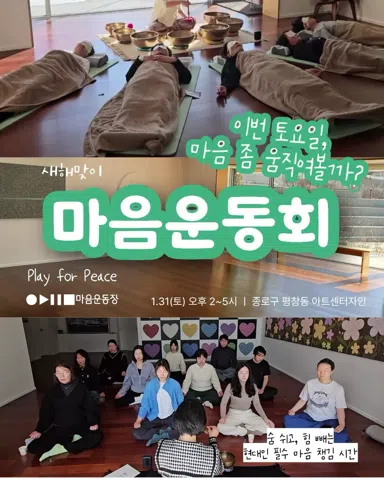 분주한 하루 속 잠시나마 나의 마음건강을 챙기고 싶은 분들을 초대합니다~🥳 하루하루 지치고 스트레스 받는 일상에서 평온한 시간을 갖는 것이 우리의 목표입니다🏞️ 전문 강사가 가이드하여 건전한 명상 활동을 제공합니다 전시, 예술, 원데이, 여행, 독서 워크샵 등 명상과 연계한 다양한 이벤트를 진행합니다 🍵정보나눔 카카오 오픈채팅방 검색 [명상으로 마음운동] 입장코드 2026 마음운동 인스타그램 @mindfulground 🎤호스트 애리 @thelovingway_ 동국대 명상심리상담학과 석사 과정 명상전문지도강사 1급