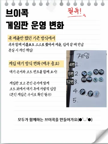 1. 가입 후 24시간 내에 자기소개글 작성 및 공지 필독⭐️ 가입후 1개월 이내 미참석시 & 가입인사 미작성시 강퇴 2. 배드민턴화, 지정 셔틀콕(kk7000, 삼화블랙) 3. 가입비 및 회비 없음 (입장료 및 콕은 지참) 4. 가입제한 (미확인 가입 후 조건 미충족시 강퇴) 남 :: 구 D조 이상 여 :: 복식 룰 숙지된 랠리 가능자 (약수터 민턴, 학창시절 조금 등등 ❌) ✅️모임 참석 1회후에 기준 미달시 가입 제한될 수 있습니다. 가입시 급수 필히 확인!!🔥조건 미달시 가입 불가🔥 무단 탈퇴시 재가입 불가 게스트 콕 3개 5. 정모 시간 1) 시간 – 화,목 (32명) 20:00 – 21:45 토 14:00 – 17:50 일 11:00 – 12:50 매월 마지막주 목요일 자율게임 (개인 콕사용, 연속 게임불가) * 일일입장 전날 온라인 사전예약 필수 및 예약 못했을시 취소 필수! (당일 정오 이후 취소 벌콕2개) 2) 장소 - 하남 종합운동장 카톡문의 kjwook11 / ek0126