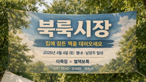 📚 남양주 다산의 독서 모임입니다. 📚 2024년 3월 "다산 책만 읽기 모임"으로 시작하여 3년차 독서 모임이 할 수 있는 일들을 해보고 있습니다. 📚 책읽고, 말하고, 쓰는 독서의 모든 것에 열린 공간입니다. 📖 책만 읽는 날 1) 매주 화요일 저녁 7시 30분 갈매도서관 5층 2) 매주 목요일 저녁 7시 30분 정약용 도서관 3층 3) 매월 첫째주 화요일은 신입회원 환영일 (인크커피) 4) 자유 독서이며, 가지고 온 책 또는 대출하여 2시간 책읽고 집에 가기 👨🎤토론 하는 날 1) 매월 마지막주 수요일 저녁 7시 30분 정약용 도서관 3층 2) 지정도서 읽고 와야 합니다.(년 12권) 3) 책 선정자가 토론 진행 4) 토론 운영지기 모임 진행(순환제) ✍️ 글쓰는 날 1) 매월 1,3주 수요일 저녁 7시 30분 인크커피 지하 1층 2) 자유로운 습작 3) 필사 하기, 독후감, 에세이 쓰기등 필력과 feel力 기르기 4) 습작 운영지기 모임 진행(순환제) 🎸 기타 책으로 할 수 있는 것들 도전 1) 윤독, 시나리오책 리딩 2) 독서행사 같이 다니기 3) 작가와 만남, 북토크 찾아 헤메기 책을 통하여 동네에 친구와 이웃을 만들어가는 곳이 되었습니다. 서로에게 다독임🌕