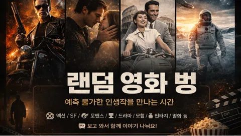 ⭐️개편 기념 남1 여1 신규모집 🎬 새로운 영화모임 방식 안내 👉 “랜덤 영화 감상 + 후토크” 1️⃣ 운영 방식 격주 진행 (랜덤 영화 벙) 나머지 주는 기존 영화관 벙 진행 2️⃣ 영화 선정 방식 3~6개의 영화 후보 선정 사전에 후보 영화에 대한 간단한 힌트 제공 예: 평점 9.3 / 미스터리 스릴러 / 90년대 작품 당일 랜덤으로 1편 선택 3️⃣ 영화 기준 너무 유명하거나 주류 영화는 제외 한 번쯤 들어봤지만 안 본 명작 다시 봐도 괜찮은 영화 👉 취향과 관계없이 “볼 가치 있는 영화” 중심으로 선정 4️⃣ 이런 분들께 추천 혼자서는 안 보게 되는 명작 영화 보고 싶은 분 실패없는 새로운 영화 경험을 해보고 싶은 분 영화 보고 가볍게 이야기 나누고 싶은 분 5️⃣ 진행 구성 참석자 인사 및 영화 선정 영화 시청 간단한 후토크 (+ 상황에 따라) 🎮 영화 퀴즈 (소소한 상품) 🎤 짧은 영화 해석 공유 (5분) 👉 부담 없이 즐기는 참여형 모임 📍 장소 / 일정 장소: 스페이스엠 창원, 딥29 등 (변경 가능) 요일: 금/토/일 중심 (평일 가능) 처음 시도하는 방식이라 몇 번 진행하며 계속 개선해볼 예정. 참석과 반응이 좋으면 더 다양한 콘텐츠와 이벤트로 확장 예정.