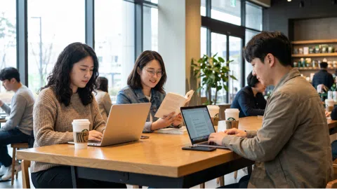 *카페에서 모여 각자 자유롭게 집중 같은 공간에서, 각자가 하고 싶은