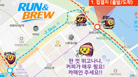 여의도🍠고구마런 뒤에 커피 한잔의 여유☕️ 🔥최대인원 99명 ~4/12(일)까지 증원X '런앤브루(런.브)'는 일요일 아침, 여의도 고구마런 코스(6.5~9km)를 함께 달리고 ️커피 한 잔으로 주말을 시작하는 모임입니다. 소모임개설 26.1.25. 첫 모임 🎊 26.2.22. 🐥러닝 입문자도 참여 가능해요. 함께 뛰고, 응원하고, 격려하며, 러닝에서 회복(recovery)과 치유(healing)로 이어지는 흐름(flow)을 즐기는 문화를 만들어 갑니다. ❇️일요일(정기런) : 여의도🍠고구마런 - 고구마 A코스 : 4~7.5k / B코스 4~9k - 초보자 4k 지점 집결지 이동 가능(총 6.5k) - 가을,겨울 9:00 / 봄,여름 8:30 주말 아침🌞 건강한 루틴, 함께 만들어보면 어때요? ✅평일~토요일(자유런) ⭐️정회원 가능 - 카키오톡 오픈채팅방 초대, 대회벙🏁 - 러닝 인증, 자율 러닝벙🏃🏼♀️, 관련 행사 참석 ✅토요일(이벤트런) : 누구나 가능 - 마곡 🦫카피바라런(7.5k), 👻고스트런(7k) - 광화문🐕댕댕런, 🐟붕어빵만들기 등 아트런 - 인왕산트레킹⛰️, 안산트레일런🪵, 경도👮🏻♂️🥷 Run together, Brew today. 함께 달리고, 오늘을 깨우자!