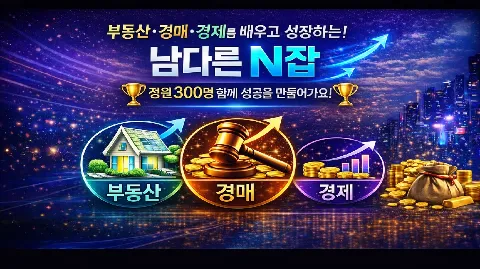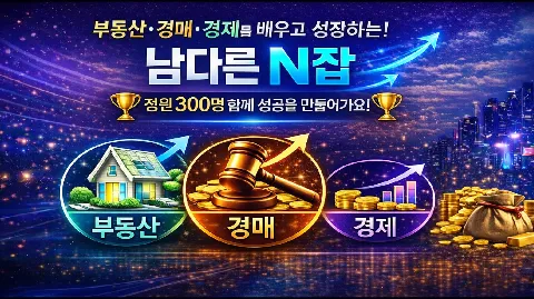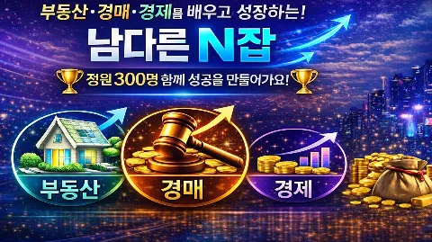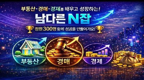 ♥정원 300명♥ [부동산/경매/창업] 🏆모임을 통한 '재태크' 맛집🏆 "잠깐 ! 여전할 건가요 역전할건가요?💦" "비싼 돈 들여 임장,강의 들으세요?🤷♀️ 부동산 기본부터~임장~데이터 분석~임장 내용 정리~투자 방향성!! 같이 성장하고 싶으시면 지금 바로 조인!"😄 서로에 부족함을 채워주고 함께 응원해주는 '남다른 N잡'에서 다 함께 성공을 위해 달려보아요!👍 🏁'누구나 서로의 선생님이 되어줄 수 있는 남다른 N잡' ✏️남다른 N잡이 추구하는 강의&모임 ✍남다른 부동산 교육[부동산기초&부동산임장] ✍남다른 부동산 스터디[부동산 기사&법령 신설,개정] ✍남다른 경매 실전[경매 기초부터 시작~고수단계 교육과정 +경제(거시경제 보고서 기반)] ✍남다른 모임원 [모임원간 서로의 선생님이 되어줍니다.] 모임장& 운영진 [글로벌 부동산회사 재직] [임대 사업자] [공인중개사/권리분석사1급] [금융권 부동산사업부] [정비사업 아카데미 수료] 🤔이런분께 강력 추천드립니다! ✔부동산 공부를 어떻게 하실지 모르는 분 ✔모임원을 통한 인사이트/노하우 공유 ✔여러 직업군을 만나보고 싶은 분 ✔종류 상관없이 함께 공부하고 싶은 분 ❣강의&모임에 신청을 원하신다면? 1️⃣가입인사 양식에 맞춰 작성 해주세요