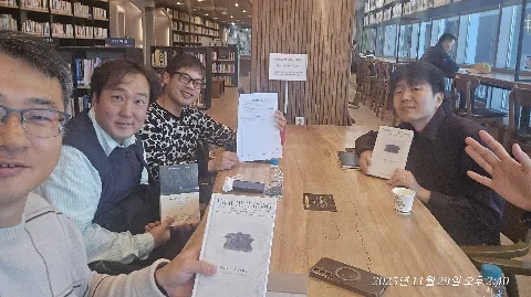 [Book & Wise sayings!] 📒 지역골목 상권에 책 읽는 문화를 조성하는 직장인 독서 모임입니다^^📚 1️⃣ 2050 누구나 환영 (책 못 읽고 오셔도 됩니다ㅎ) 2️⃣ 날마다 주간 테마 명언을 공유합니다. 3️⃣ 월 독서 모임은, 매월 마지막 토요일 오후 2시입니다.(국악원 북카페) 4️⃣ 가입 후 24시간 안에 게시판에 있는 자기소개와 인사해요~ 5️⃣ 정모는 매주 목요일 저녁 7시30분입니다. 1주차 : 운영진 회의 2주차 : 티타임 및 명언 나눔 3주차 : 명사 특강 및 도서 기증 등 행사 4주차 : 토욜 독서 모임(14시) (공휴일.천재지변 등 경우 일정변경^^) 6️⃣ 오픈채팅방 운영 중(회원님 중 원하시면 초대합니다!) 7️⃣ 수시로 명사 특강 진행합니다. ㅡ 전문가 그룹의 자문위원과 멘토님들이 계십니다. (🧑🎓🧑🍳👨🔧👨🎤🧑✈️🧞♂️ 등 많이 있습니다^^) 💢 25년 10월부터, 시즌 3. 모임이 시작되었습니다! [정모시 참가비 커피값 6천원 선입금입니다 ^^] ㅡ 장소 예약을 위해서 꼭 필요합니다.! 🏧 계좌 : 카뱅 3333 18 1501304 (예금주 : 김종환ㅡ 영끌모임 전용계좌. 환불❌️) 💱 협찬과 후원은 언제든 감사합니다😁