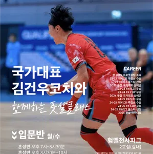 우풋살 : 험멜천사파크에서 운영하는 풋살 클래스 장소 : 험멜천사파크 2호점 실내구장 (번개로 매치도 진행합니다❤️) ▶️모집조건◀️ 성인이면 누구나 가능!! 우풋살 클래스 입문반/심화반 모집합니다. 험멜아카데미 코치진과 함께 즐거운 풋살해요. 입문반 월/수 오후8시30분 심화반 화 오후8시30분 체험수업 가능 🔥 ⭕️환영⭕️ 찐 풋살을 배우고 싶으신 분 다이어트하고 싶으신 분 즐겁게 운동하고 싶으신 분 인성&매너를 중시하시는 분 ❌가입거절❌ 넘치는 승부욕으로 과한 플레이 하는 분 개인플레이 위주로 하시는 분 기본 매너가 없으신 분 수강료 및 궁금하신점은 언제든지 환영합니다. 010.2484.6494로 문의하세요📱