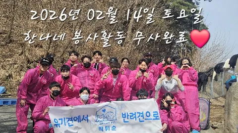 떡튀순은 대구권의 유기견 봉사활동을 위한 모임이며 성인 봉사자들 모집중입니다. ✔️떡튀순은 현재 단톡방에 본진을 둔 작은 모임이며 인원은 130명정도입니다. ✔️운영회비 1만원은 매월 5일에 받습니다. 가입하신 달은 회비면제입니다! ✔️모임통장이고 내역은 매 익월 회비 입금전에 투명하게 공개합니다! (주로 활동시 필요한 일회용품 구매에 사용) 가입 후 자율적으로 매주 참석하셔두되고 한달에 한번 참석하셔도 됩니다. ✅️ 봉사 장소 : 주로 한나네 보호소or다른 보호소도 가끔 갑니다! (정확한 주소는 봉사 전 날 안내) ✅️ 봉사 시간 : 주말 오전 09시에 모여 2~3시간 소요 (정확한 일정, 장소 및 봉사안내는 따로 안내드립니다) ✅️ 주 활동은 유기견 배변 청소 및 정리정돈, 사료 물 리필, 분리수거입니다. 선한마음으로 시켜서가 아닌 본인의 의지로 자주는 아니더라도 꾸준히 활동하며 봉사하실분들의 많은 참여 부탁드립니다. 선한 마음으로 모여 서로에게 선한 영향력을 발휘하며 좋은 인연이 되면 좋겠습니다! 불순한 목적❌️ 여미새 남미새❌️ 분탕러,허세러❌️ 노쇼❌️ 영업 및 홍보❌️ 동종모임 중복가입❌️ 가입후 자기소개 및 공지사항 필독부탁드릴게요😊