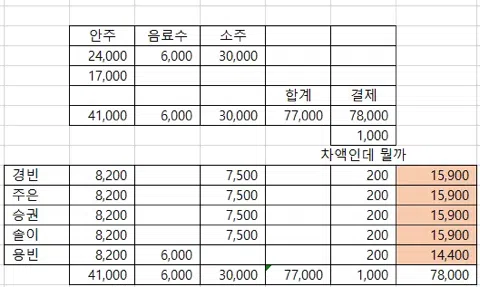 상세내역 영수증 잃어버려서 네이버 메뉴판 검색해서 거기써진 금액으로 계산햇어용 뭔가 이상하다싶으면 모란 산속도깨비 대신가서 영수증좀 받아다줘… 1차 산속도깨비 2차 마돈나(내기했어