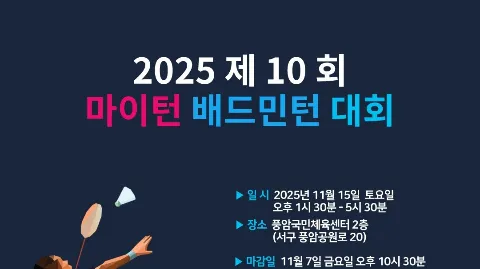 👍 마이턴은 배드민턴을 즐기는 사람들의 모임입니다! 🏢 주 체육관: 첨단 다목적체육센터 (광산구 첨단강변로 76) 🏸 정모 개시일: 매일(체육관 휴관일 제외, 참석인원이 4명 이상일 경우 정모 진행) 🏸 가입 조건 <필수> 복식경기 룰 숙지 및 랠리 가능한 자, 혹은 단기간에 준하는 실력이 될만큼 자주 참석할 자. - 나이제한: 20세~39세(연나이 적용, 2006년생~1986년생) - 클럽 및 타모임 중복 가입 허용(정모시간과 장소 모두 겹치는 경우 제외) - 가입 24시간 이내 자기소개 댓글 작성 필수 ❌️ 미작성 시 추가 고지 후 총 48시간 이내 미작성 시 강퇴 - 가입 전 모임장에게 가입문의 DM 필수! 🏸 가입 모집 기간 모집방법 - 매년 1월부터 10월까지 - 매달 소모임 DM으로 연락온 순서대로 가입 안내사항 공지 후 가입여부 확인 뒤 모집 🏸 유의사항 - 영업, 작업, 무개념 등 모임을 저해하는 행동 금지 - 일회성 가입 및 참석 불가 🏸 회비 안내 - 월납 4,000원 / 연납 48,000(매달 1일 입금) - 재가입 회원은 가입 즉시 당월 회비 납부 ‼️신입 회원은 가입 다음 달부터 회비 납부‼️ 🏸 필수 준비물 : 라켓, 실내운동화(배드민턴화), 셔틀콕(안내사항 필독!)