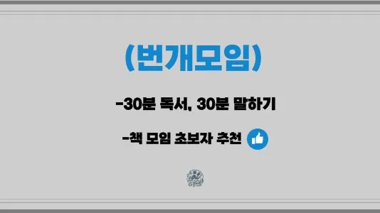 책에 재미가 느껴지지 않는다면 그건 실패한 독서다 ▪︎혼자 읽고 끝내는 독서 X, 같이 읽고 함께 해나가는 독서 O ▪︎실천없고, 대화 없는 독서 X, 실천해보고 느낀점을 나누며 진짜 내것으로 만드는 독서 O 독서뿐만 아니라 영화도 함께! 가벼운 느낀 점부터 심도 있는 내용까지! 모임을 통해 다양한 이야기를 들어봐요. ☆! 가입 후 게시판 가이드북 꼭 확인해주세요 !☆ ▪︎진행시간: 평균(07:00~09:00) ▪︎활동 장소: (구리, 노원) 📕모임종류 번개모임(자유도서) -30분 독서 30분 이야기 -함께 책을 읽고, 나누는 습관을 들여보자 -독서 초보자 추천👍 (모임에서 읽은 책을 여러번 가지고오셔도 괜찮습니다^^) 지정도서(선택) -지정 도서 투표진행 -발제문 작성으로 집중 분석, 토론🔥 -조용하고 집중 할수있는 세미나실 이용 지정영화모임 -지정된 영화 감상 후 토론 -모임장 주관 발제문으로 심도있는 분석 -조용하고 집중 할수있는 세미나실 이용 📔주의사항 -모임 참여 1회 이후부터 <구독자> 톡방 참석 가능! -가입 후 1달이내 참여 부탁드립니다 -당일 모임 취소시 경고 1회 2회 경고 누적시 강퇴