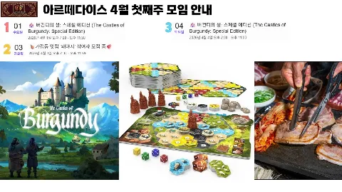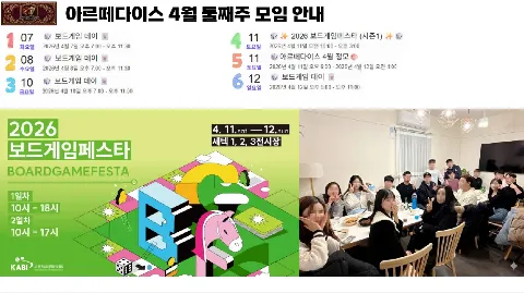 🎲 ArteDice : 보드게임 & 문화생활 🎭 🏠 아지트(26년 1월 오픈) 📍 위치 | 시민공원역 아인애비뉴 (전용 아지트) 🛋 환경 | 카페 눈치 NO! 우리끼리 편안하게! 🎮 게임 | 수백종의 파티/전략 보드게임 완비 🚇 교통 | 🚊대중교통 편리한 위치 🚘주차 쾌적 🎯 [ACTIVITY] 무엇을 하나요? 🃏 MAIN | 보드게임 🔹 도와줘요 스피드웨건🕵♂️! 룰 몰라도 '친절 설명러' 상시 대기 👨🏫 🔹 퇴근 후 가볍게 한 판! 급벙개가 활발한 모임 ⚡️ 🔹 주말엔 밤샘 게임도 가능! 우리만의 공간이 있으니까요 🌙 🎬 SUB | 문화생활 🔸 영화, 연극, 전시회 등함께 관람 🖼 🔸 분기별 1회 뮤지컬 관람 🎼 🛡 [RULES] 클린한 모임 약속 ✅ 열정 멤버: 4개 이상 중복 모임 가입자는 사양합니다 🙅♂️ ✅ 매너 중시: 무례하거나 선을 넘는 분은 즉시 퇴출 🚫 ✅ 안전 최우선: 개인 연락처/SNS 교환은 금지합니다 🔐 ✨ [JOIN] 이런 분을 기다려요! 🙋♂️ 인근 아지트에서 편하게 놀고 싶은 분 🙋♀️ 보드게임에 진심이거나 배워보고 싶은 초보자 🙋♂️ 좋은 사람들과 꾸준히 취미를 공유할 '찐인연'