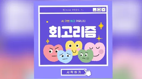 회고리즘 | AI 기반 회고 커뮤니티 👀💬 매주 회고글을 쓰고, AI로 분석한 나의 감정 패턴을 함께 나눕니다. ✔️ 8주 시즌제 운영 (1기 : 1/5 ~ 3/1) ✔️ 매일 회고글 입력 시 AI 분석 제공 ✔️ 매주 감정 회고 워크북 제공 💬 매일 회고하는 습관을 만들 수 있어요! 👀 감정 회고를 통해 자기 이해를 늘릴 수 있어요! 혼자서는 어려웠던 꾸준한 회고 회고리즘 1기에서 함께 도전해보세요 🌱