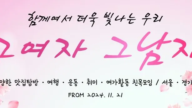🤗🤗여성회원 대 환영합니다~😆🤩 💫다양한 술자리,친목 취미 여행 운동 여가 소통 💫주 활동지역-관악구,동작구,금천구..등등 💫73~85 법적싱글(운영진 추천, 기존멤버 예외) 💫인성,매너,배려 두루 갖추신 바른분 환영🤩🤗 ☘️자소서 필히 작성(추후 삭제×) ☘️벙 2차부턴 여성분 할인 (벙주쟤량/여벙,정모,게스트예외) ☘️다양한 벙 개설 장려 🚫진상,욕설,여미새,남미새,스토커 즉시강퇴 한달이상 첫벙 미참여자 우리모임과 맞지않다고 판단되는분! 🚫가입당일은 남성분 벙참석불가 🚫3인이상 단톡방/비벙금지 🚫타 친목모임 모임장/운영진 여기포함 사교모임 3개까지만(정리하고오세요) 좋은분들과 오래오래 소통하고 응원하는 따뜻한모임이 되었음 좋겠습니다😆🥰🤣 from 2024 11 21