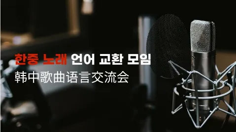 [초기멤버 비용 zero] 지루한 문법 공부는 이제 그만! 혼자하는 외국어 공부도 이제 끝! 한중 노래 언어 교환 모임 Sing C/K(씽크)에서는 한국인은 중국 노래를 통해 중국인은 한국 노래를 통해 가장 즐겁게 언어와 문화를 교환하는 모임입니다. 매달 한 곡을 마스터하고, 마지막 주에는 퀄리티 높은 '녹음 영상'을 남기는 프로젝트입니다. 책상에 앉아하는 중국어에 지친 분! 즐겁게 노래를 통해 공부하고 싶으신 분! 중국어 능력 상관없습니다. 적극적으로 가사 외우고 참여해주실 분들을 구해요. 모임때 가사를 번역하고, 같이 부르면서 마지막에 다 같이 나의 목소리로 녹음해요! 1차 멤버 모집기간 2026년 02월 24일 ~ 마감 시 노래 선정 및 장소/날짜 등 멤버들과 사전에 협의해서 선정 예정입니다. 먼저 들어와서 원하는 날짜 컨텍하고 재밌게 공부해요.