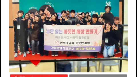 낭만 있는 따듯한 세상 만들기❤️ 회비 참가비x 집수리 봉사 (함께 웃는 세상, 따듯한 세상) 유기견 봉사 (월4회) 시각장애인 봉사 (마포 장애인종합복지관) 청각장애인 봉사 (청음 복지관) 구세군 강북종합사회복지관 모든 봉사 신청은 카톡 방에서 가능합니다.
