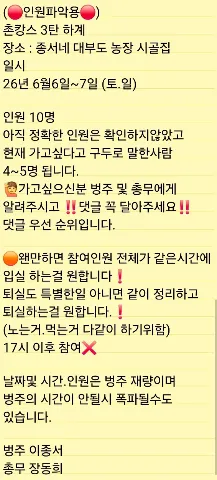 💗💗<신입모집> 젊은 사장님들 함께해요💗💗 SINCE 2015.04(10년째 이어온 가족같은 모임) 인천 전지역 젊은 사장님들을 위한 모임 Owners Club 입니다. 💯자영업에 유익한 정보 공유도하고, 서로에게 의지와 힘이 되어주는 친목 모임입니다.😊 💯주기적인 정모,강연,MT,체육대회,사회봉사 등 각종 행사 진행중입니다 💯매월 마지막주 일요일 정모진행(기존회원 3개월에 한번은 필참조건)신입회원 가입1개월이내 정모필참 ✔가입시 연령 80년생~00년생 제한을 둡니다. ✔본인(공동)명의의 사업자등록증 확인 ✔연회비운영 ✔소모임내 타 자영업모임 중복금지 ✔영업, 불법업종(외 타투,보험,네트워크판매 등) 불가 ✔단순 임대업 불가