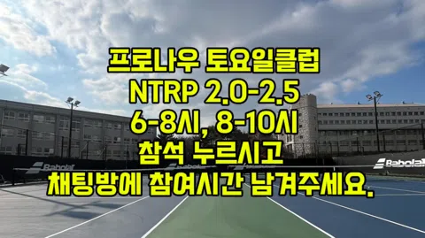 🙋♂️🙋♀️ 테린이 남여 신입회원 모집중~! 🎾 PRONOW TENNIS CLUB •구력 6개월 이상! •APIS 아시아퍼시픽국제학교 신상 테니스코트! •상주 코치님 원포인트 레슨 특전! •타모임 운영진 가입불가🙏 •모임계좌 🤑 카카오뱅크 79423116609 프로나우 📌모임 비용은 신청 후 당일 입금 부탁드려요! ⸻ 👨👩👧👧 그룹레슨 정모 •전문코치 피딩 드릴 진행! •스텝부터 포핸드, 백핸드, 서브까지 전방위 업그레이드! •2코트, 코트당 최대 6명 •2시간 풀타임 훈련 •땀은 많이, 웃음은 더 많이! 😁 ⸻ 📌매주 토요일 오후6-8시, 8-10시 ntrp2.0-2.5 레슨 꾸준히 받으시며 게임하고, 땀흘리기 원하시는 분! 매너 좋고, 즐겁게 참여 원하시는분! ⸻ 🎾 게임 모임 •실전 게임 •2코트, 코트당 최대 6명 •2시간 동안 “이기는 법”보다 “즐기는 법”을 배웁니다. •승패보다 하이파이브가 더 많아요 🖐️ ⸻ ⚡벙개 모임 •갑자기 테니스 하고 싶은 날? 바로 “벙개 ON” •그룹레슨 / 게임 / 랠리 등 상황 따라 자유 진행 •공지 뜨면 고민 금지, 라켓 들고 출동 🏃♀️